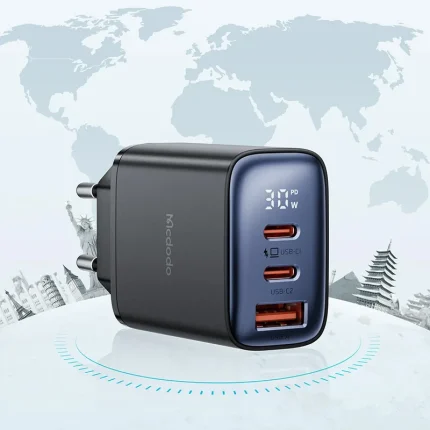 شارژر دیواری مکدودو مدل CH-5080 یک شارژر قدرتمند و جمعوجور است که برای کاربران دستگاههای هوشمند طراحی شده است. این شارژر دارای یک پورت تایپ‑C با توان خروجی ۴۵ وات بوده و با پشتیبانی از فناوری Power Delivery (PD) و Super Fast Charging 2.0 سامسونگ، شارژی سریع و ایمن را برای گوشی، تبلت و لپتاپهای سبک ارائه میدهد.